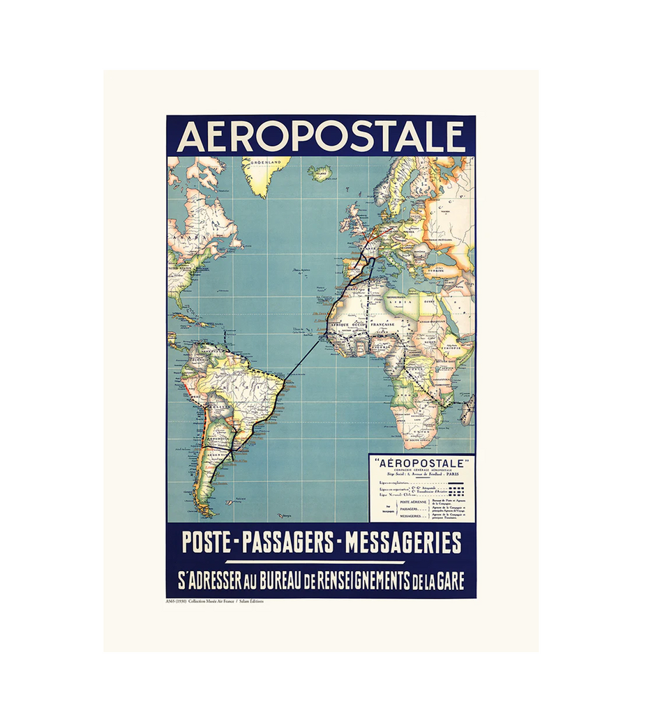 Affiche Aéropostale, Poste - Passager - Messagerie A565. Date : 1930. Réédition en collaboration avec le Musée Air France.