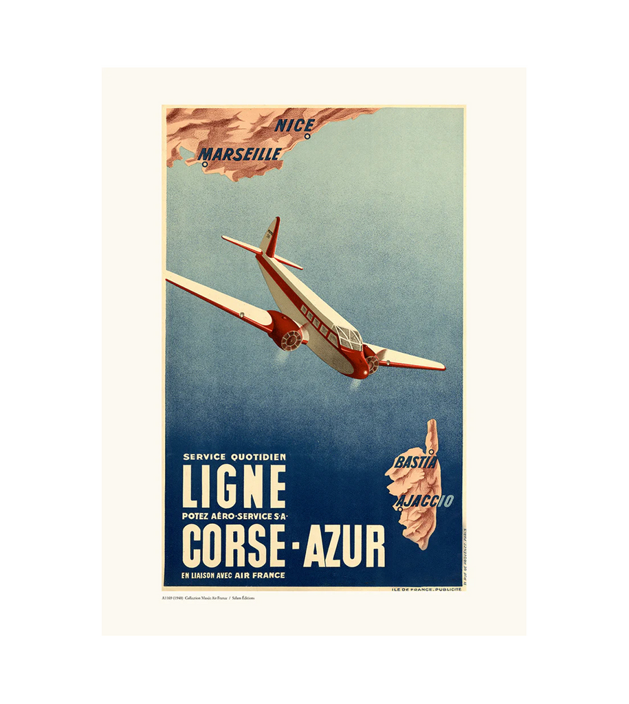 Affiche Air France, Corse Azur A1169. Date : 1950. Réédition en collaboration avec le Musée Air France.