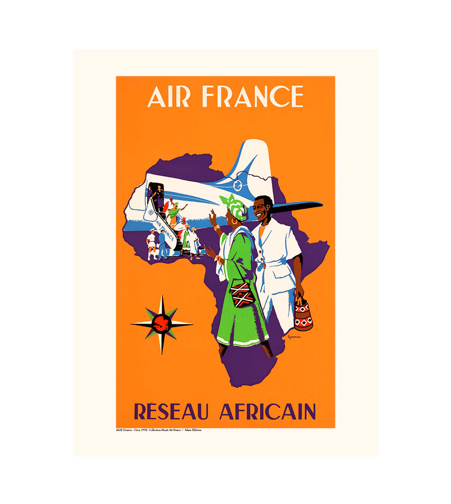 Affiche Régie Air France, Réseau Africain A428. Date : 1950. Réédition en collaboration avec le Musée Air France.